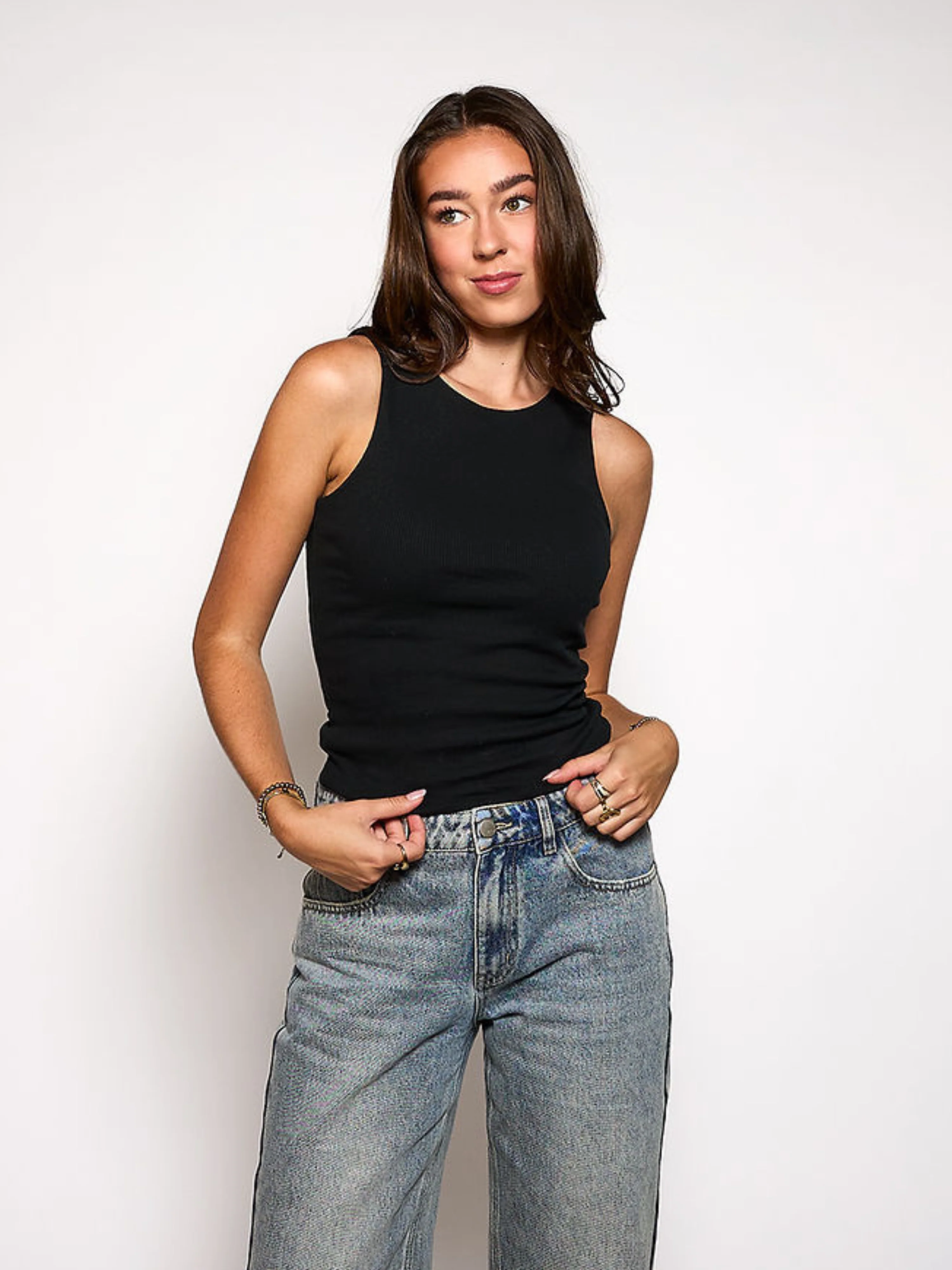 De Noa rib tank top is de ultieme basic die niet mag ontbreken in je kast. Gemaakt van een zachte, elastische ribstof die heerlijk zit en mooi aansluit. De top is tall proof en heeft extra lengte, zodat hij perfect valt en mooi op zijn plek blijft. Dankzij de extra binnenlaag schijnt hij niet door en kun je hem zelfs bra-less dragen.