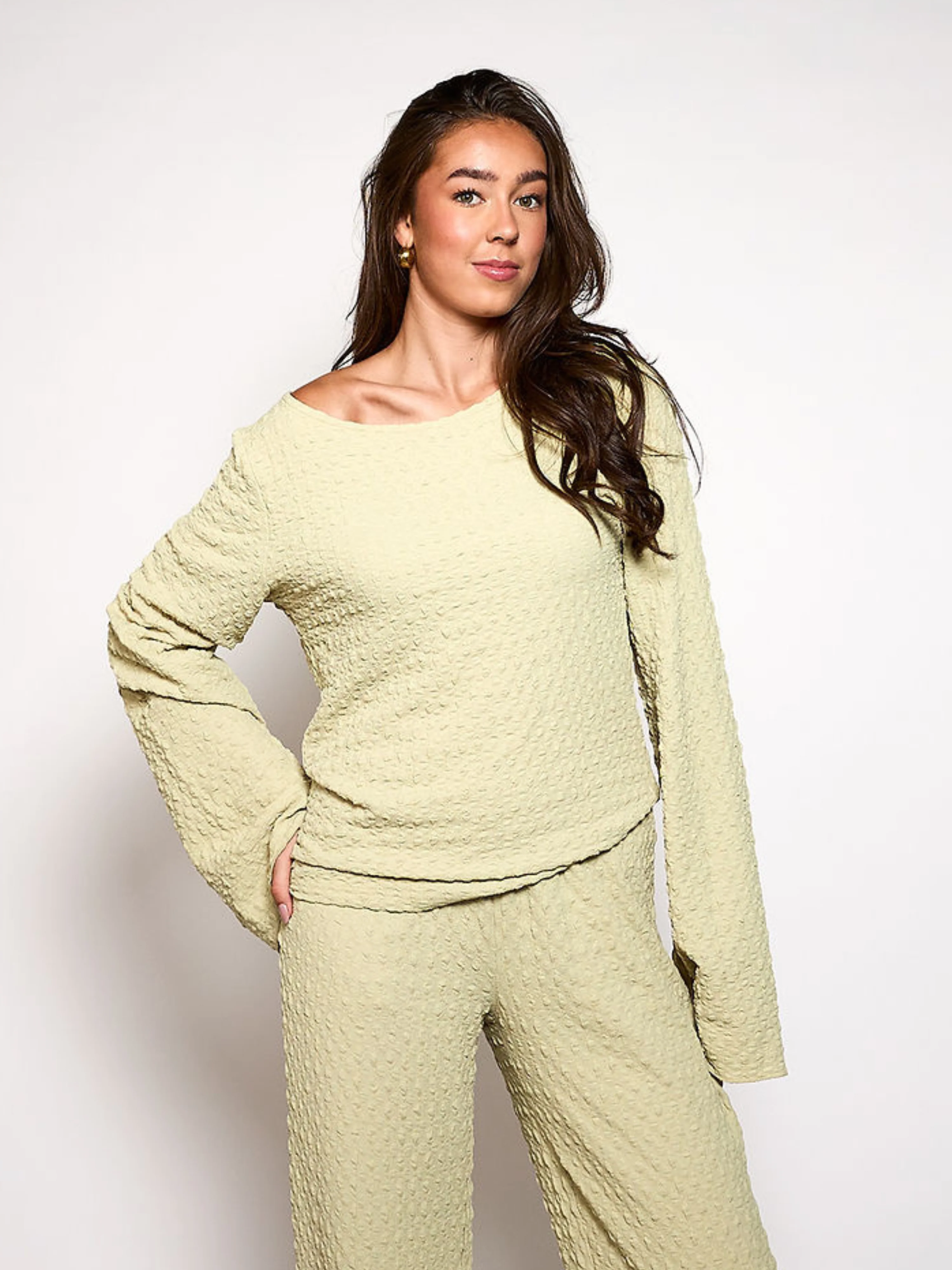 De Jolie top is jouw nieuwe summer favorite. Gemaakt van een luchtige, flowy stof met subtiele structuurdetails voor een stijlvolle look. De top valt soepel, voelt licht aan en is perfect voor warme dagen. Draag hem los of combineer met de bijpassende broek voor een complete co-ord set. Verkrijgbaar in zwart en groen.