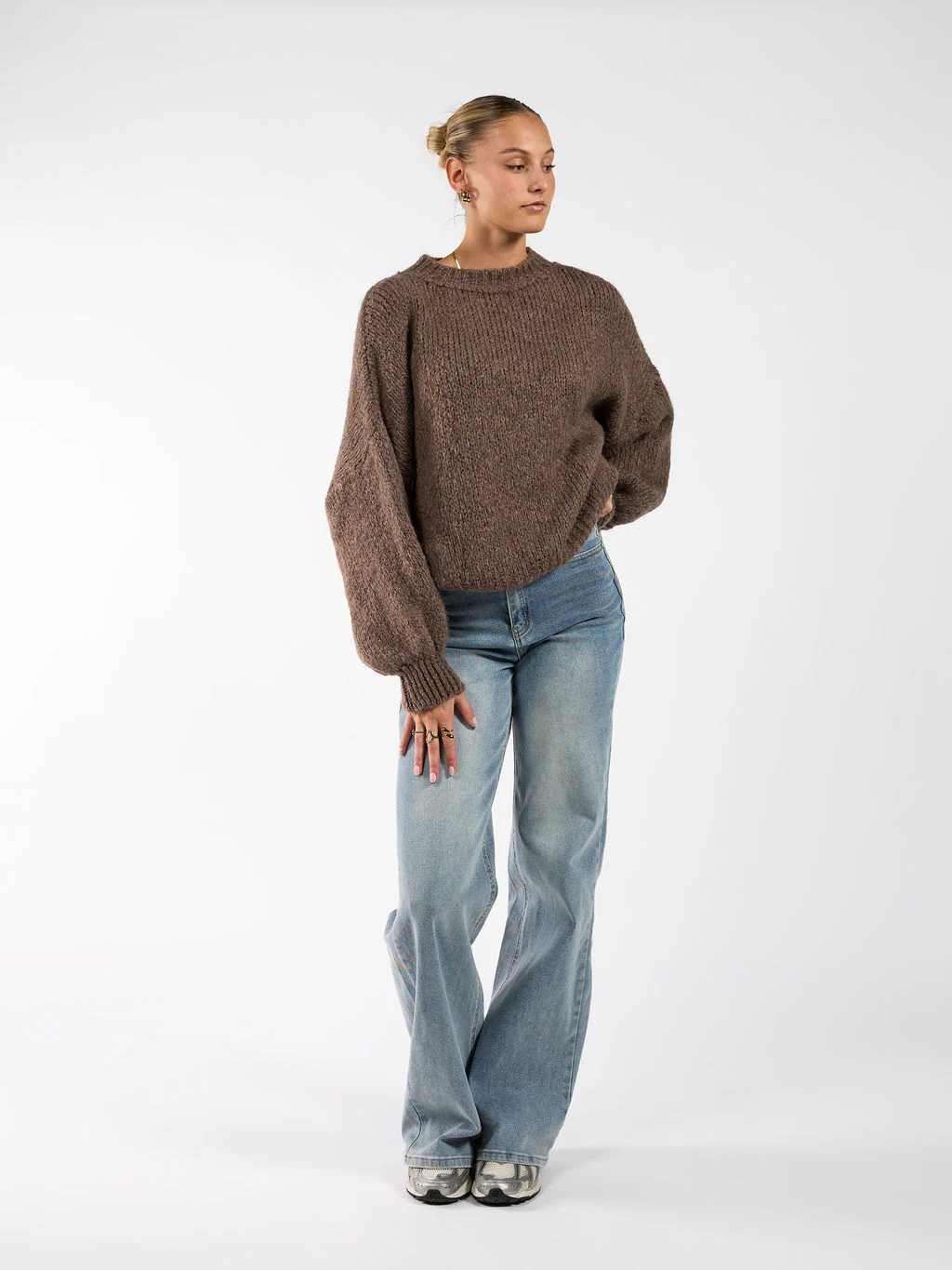 Your new fave knitwear! Deze gebreide trui is een echte musthave voor het najaar. De trui heeft een oversized fit met lange ballonmouwen voor een comfortabele en stijlvolle look.