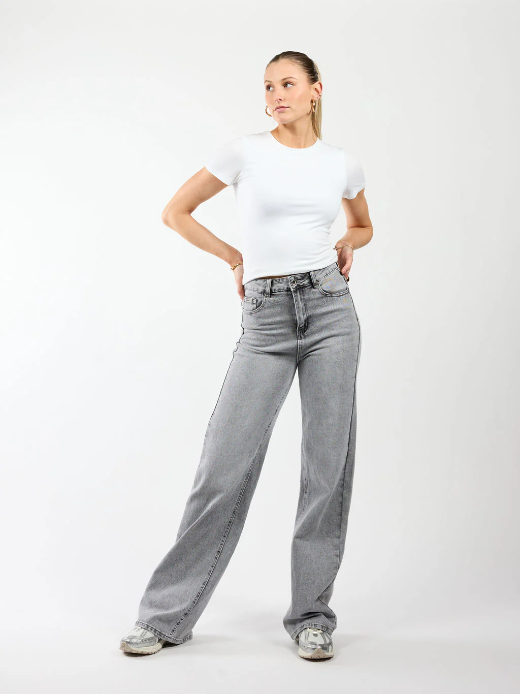 Sassy | Super Wide Leg Jeans | Stretch | Washed Grey | Tall